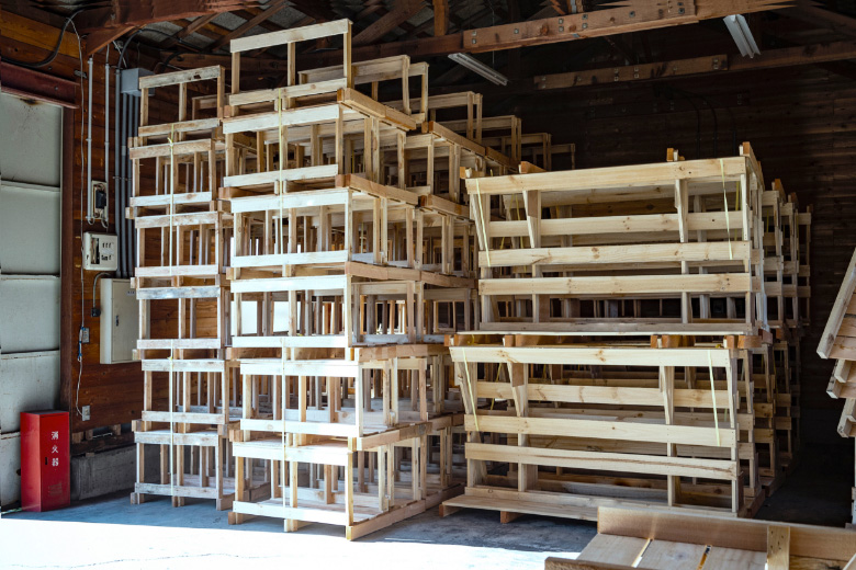 国際基準で規制の対象外とされる合板のため、輸出向けパレットとして使用されています。