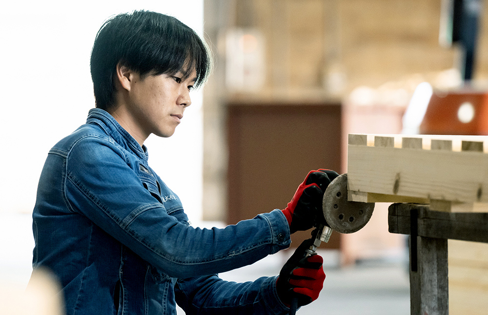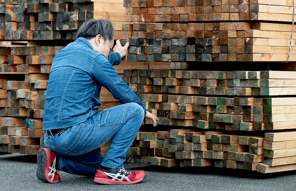 チェックシートをもとに、寸法や部材、熱処理スタンプの確認、釘の打ち忘れやカビの付着がないかなど、目視による品質チェックを実施しています。