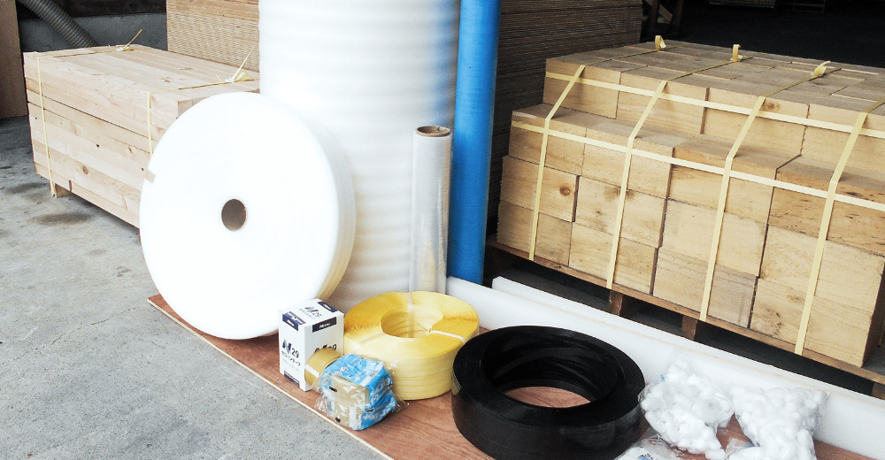 トラック用のバン木、敷板の合板、梱包用のテ-プから帯電シ-トまでご用意できます。